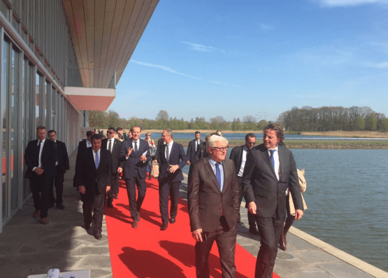 Voordat het regeringsoverleg vanmiddag van start gaat op de High Tech Campus, brengen de ministers van Buitenlandse zaken van Nederland (Koenders) en Duitsland (Steinmeier) een bezoek aan de Design Academy aan de Emmasingel.