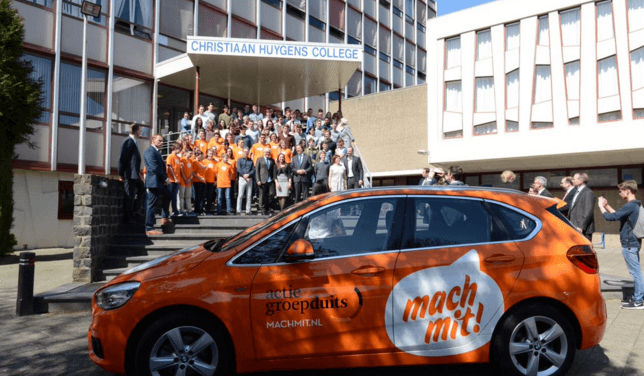 Naar het Christiaan Huygens College. Hier krijgen zij een speciale tentoonstelling te zien over de favoriete Duitse woorden van de onderbouw leerlingen. Ook wonen ze een les bij over de Duitse cultuur en taal. Aansluitend krijgen bovenbouw leerlingen de kans om beide ministers vragen te stellen.
