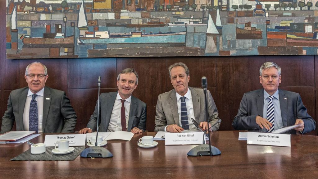 Hoofdfoto: Burgemeesters Rob van Gijzel (Eindhoven), Antoin Scholten (Venlo), Hans Wilhelm Reiners (Mönchengladbach) en Thomas Geisel (Düsseldorf) – Foto (c) David Young.