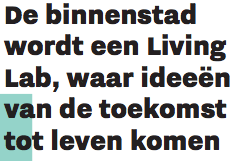 Voor de living labs – binnen tien jaar moeten er zeker tien gerealiseerd zijn – wordt nog naar verschillende partners gezocht “om ook echt nieuwe technieken en systemen toe te passen in het dagelijkse functioneren van de binnenstad”.