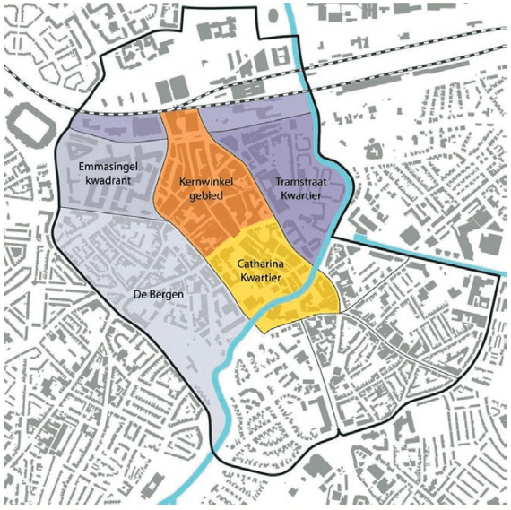 Door actief in te zetten op gebiedsprofilering, krijgen ook de buurten aan de rand van het kernwinkelgebied als het goed is een eigen identiteit en een bijbehorende vertaling naar cultuur, horeca, winkelen, business, vrije tijd en vooral ook wonen. Zo zou er een creatief district moeten komen waar Eindhovens ontwerptalent te vinden is. “Of een district, waar hoogstedelijk wonen zich mengt met aangename verblijfsplekken.”
