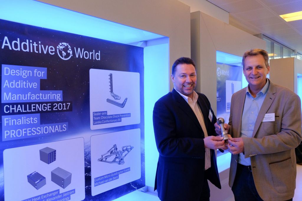 Alle 6 de finalisten worden uitgenodigd voor de Additive World Conference op 14 Maart 2018 in Eindhoven, waar de winnaars van de Design challenge worden aangekondigd tijdens het Additive World Awards diner door Erik de Bruijn, medeoprichter van Ultimaker en voorzitter van de jury. “Elk jaar worden we aangenaam verrast door de inspirerende ontwerpen en de nieuwe inzichten over de mogelijkheden van het 3D printen.” Daan Kersten, CEO van Additive Industries kijkt nu al uit naar maart: “Het wordt vast weer een succesvolle editie van de Challenge, met inspirerende ontwerpen die voorbij gaan aan beperkingen van conventionele productietechnieken, het aantal onderdelen reduceren, assemblagekosten minimaliseren of transportkosten verlagen.”