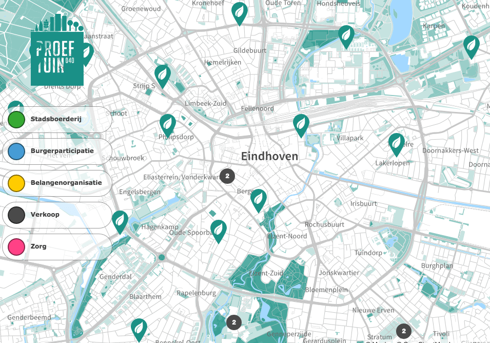Op de site 040GoedBezig – een platform voor duurzaamheid in Eindhoven – worden ook initiatieven verzameld die te maken hebben met stadslandbouw. Zo staan er tips om op gemeentegrond een gemeenschappelijke buurtmoestuin te beginnen. “Een buurtmoestuin begin je samen met andere stadsgenoten. Samen draag je zorg voor het onderhoud van de tuin.” De oogst wordt uiteindelijk gedeeld.