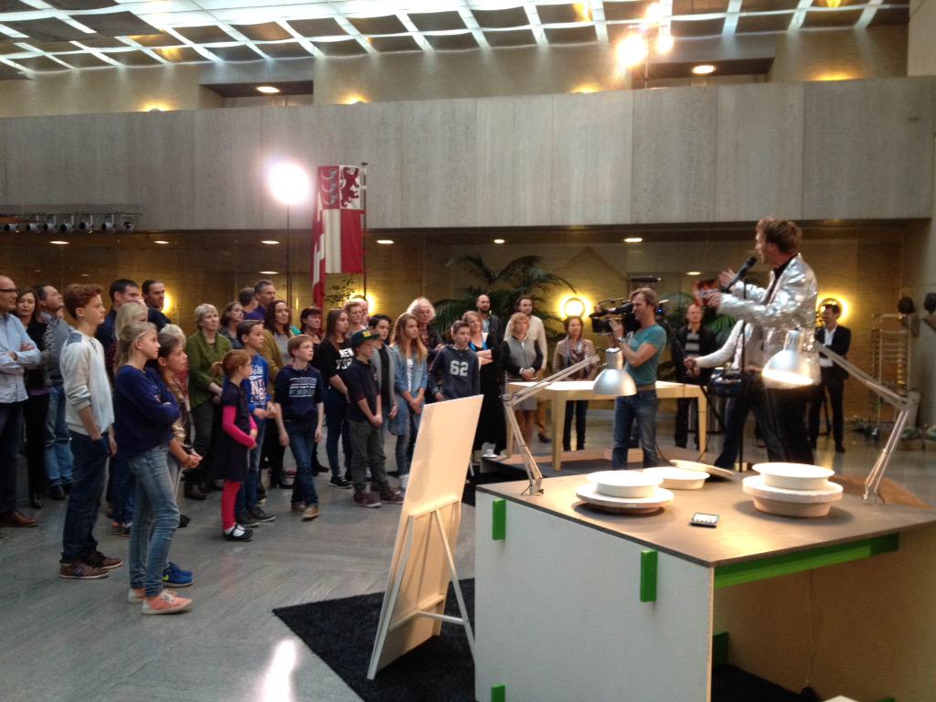 Woensdag 14 oktober vond in het stadhuis van Eindhoven de feestelijke opening plaats van de expositie ‘Iedereen aan ’tafel’. In deze expositie worden de prototypes getoond van vijf getalenteerde jonge designers die de wedstrijd ‘Het Klokhuis zoekt ontwerpers’ hebben gewonnen. De prototypes zijn ontwikkeld samen met designers van toonaangevende ontwerpstudio’s, en zijn allemaal bedoeld om de wereld een beetje beter te maken. Van 17 t/m 25 oktober is de expositie voor iedereen gratis te bekijken in het stadhuis van Eindhoven.