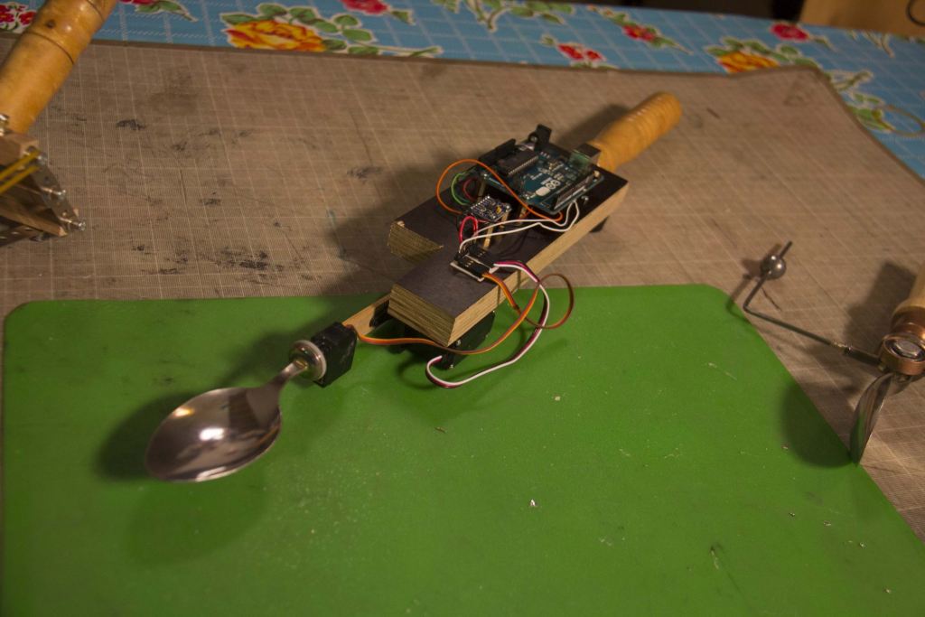 “Dat ik won was een grote verrassing. Er was een eerste bijeenkomst met meerdere ontwerpers. Toen hebben we nagedacht over hoe we de lepel gingen maken. Wat gaan we gebruiken? Bijvoorbeeld een giroscoop. Vervolgens ging de uitvinder, Eibert Draisma, de lepel proberen te maken. Bij de tweede bijeenkomst waren de protoptypes af. Ik vind het knap dat hij een prototype heeft gemaakt zonder electronica, maar wat werkt met een gewicht. Die werkte al best wel goed. Het beste prototype was er een met chips en electronica. Ik heb het zelf getest, maar de bewegingen waren nog iets te langzaam. We gaan alle prototypes laten zien tijdens de DDW. Ik zal er zelf bij staan om uit te leggen hoe het werkt.”