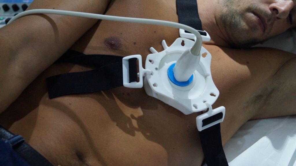 De gisteren gepatenteerde ProbeFix maakt het mogelijk om echo’s te maken zonder dat de echografiekop met de hand vastgehouden wordt.