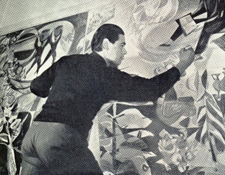 Kunstenaar Albert Troost maakte in 1955 in de kantine van Eindhoven Druk een muurschildering. (Bron: Eindhoven-in-Beeld) Dat deed hij ook bij het Philips Natlab Auditorium.