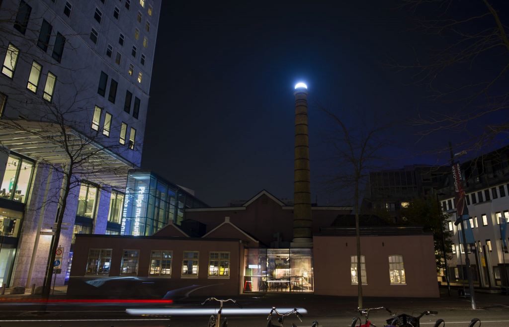 Het subtiele lichtwerk van Ex accentueert het verhaal van de geschiedenis van de oude gloeilampenfabriek en haar omgeving, volgens Degen. “Het kunstwerk haalt de fabriek letterlijk uit zijn schaduw en zorgt voor een persoonlijke en intieme beleving in de stad.”