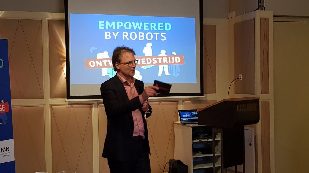 Roald Klumpenaar heeft met zijn “Focused Assembly Worker” de “Empowered by Robots-Challenge” gewonnen. Daarmee liet hij onder meer de Rollator Inspecteur en de Blinde Verkeersregelaar achter zich. Klumpenaar verdiende 10.000 euro met zijn idee, dat volgens de jury direct uitvoerbaar is. Klumpenaar wil met zijn oplossing mensen aan de onderkant van de arbeidsmarkt helpen door ze met direct zichtbare instructies via een VR-bril of een beamer ook ingewikkelde werkzaamheden te laten uitvoeren (zie ook de video onder aan dit artikel voor zijn eigen toelichting).