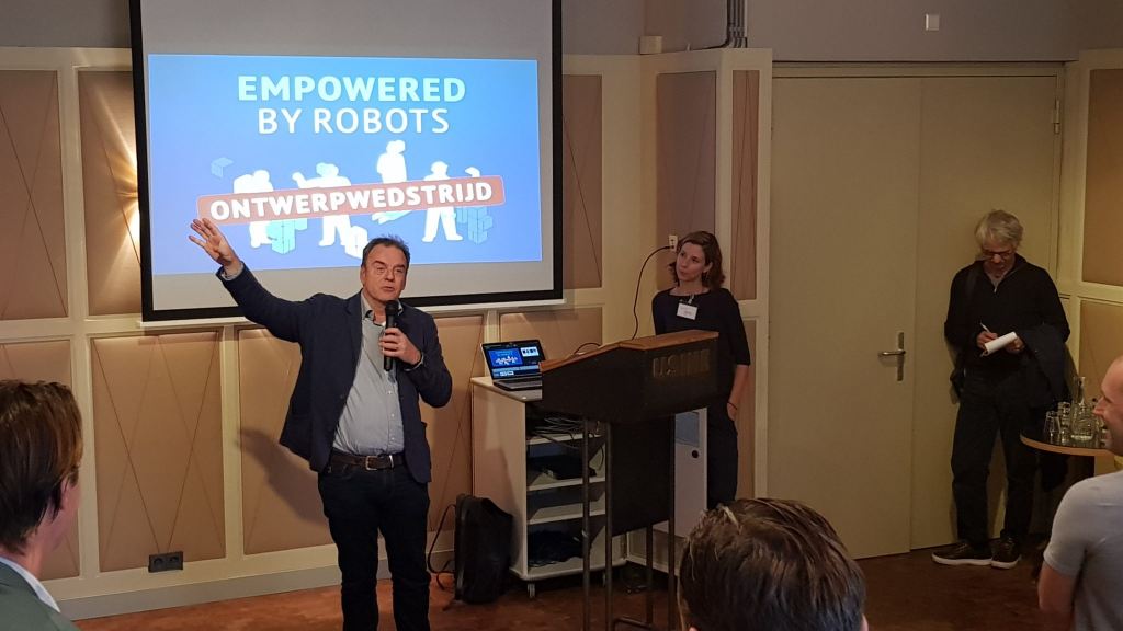 De prijs werd uitgereikt door wethouder Staf Depla (Eindhoven, EZ) en directeur Jos Verhoeven van Start Foundation. De wedstrijd was bedoeld om niet zozeer voor of tegen robotisering te zijn, maar om te kijken naar methoden om mens en robot samen te laten werken, zeker ook voor mensen met lage kansen op de arbeidsmarkt. Er waren 75 belangstellenden voor de wedstrijd, van wie er uiteindelijk 25 daadwerkelijk meededen, zei Verhoeven bij de uitreiking. “We kunnen onze ogen sluiten voor de robotisering, maar we hebben ook een verplichting richting mensen aan de onderkant van de arbeidsmarkt. Wat voor invloed zou robotisering op hen hebben? Echt, iedereen krijgt hier mee te maken.”