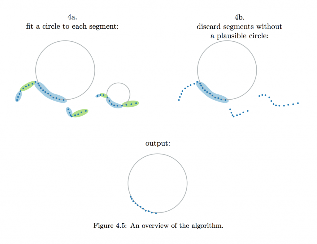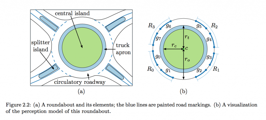 Dit alles moet dan weer gecombineerd worden met de meest gedetailleerde gegevens op de digitale landkaart. Om autonoom over een rotonde te kunnen rijden, moet die auto de geometrie van de rotonde exact kennen. Daarvoor heeft Raaijmakers een algoritme ontwikkeld voor een systeem dat de afmetingen en de positie het centrale eiland van de rotonde kan bepalen.