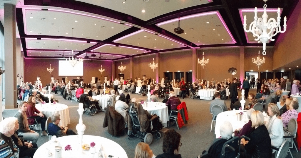 Dat begon allemaal dit voorjaar, toen Thea Sturme van zorg- en welzijnorganisatie Archipel tijdens het “Maatschappelijk Diner Eindhoven” de wens had uitgesproken voor haar cliënten een mooie bruidsshow te organiseren. Dat verzoek bleek niet aan dovemansoren gericht. De ene bruid na de andere meldde zich, Van der Valk bood de locatie aan en De Witte Raaf het vervoer van alle deelnemers (in leeftijd variërend tussen de 50 en 100 jaar). Sturme kreeg voor deze bijzondere prestatie dan ook de aanmoedigingsprijs “Het Compliment” uit handen van wethouder Jannie Visscher.
