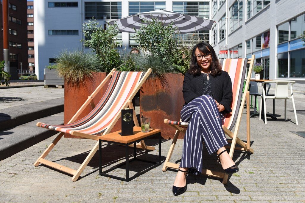 Op een zonnige ochtend gaan we DenF koffie binnen en kijken of we Sheba ergens zien. Na een tijdje spotten we haar. We vinden het heel erg leuk om haar te ontmoeten, omdat zij de eerste Chinese persoon is die ja zei tegen ons interviewverzoek. “Dat komt omdat ze niet graag in de schijnwerpers staan en misschien een beetje terughoudend zijn om hun verhaal te vertellen,” vertelt Sheba. “Ik heb met veel Nederlanders in China gewerkt en ben getrouwd met een Nederlander. Ik ben dus gewend om met Nederlanders om te gaan.” Sheba komt over als een energieke vrouw. “Ik heb geleerd veel directer te zijn tegen mensen. In China komen mensen niet snel voor zichzelf op. Zo woonde ik hier in Nederland een internationale banenbeurs bij en een jongen was heel negatief en maakte grapjes over een lezing over hoe de echtgenoten van internationals gelukkig te houden. In China zou ik mijn mond hebben gehouden en het voorbij hebben laten gaan. Maar hier ging ik de confrontatie aan en vertelde hem dat wat hij zei niet leuk was. En nu zijn nog steeds kennissen, wat denk je ervan!”