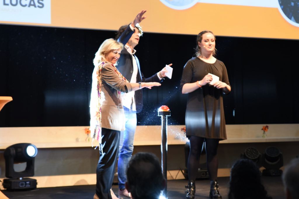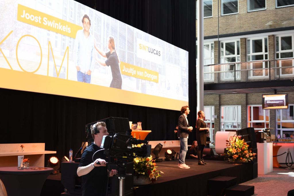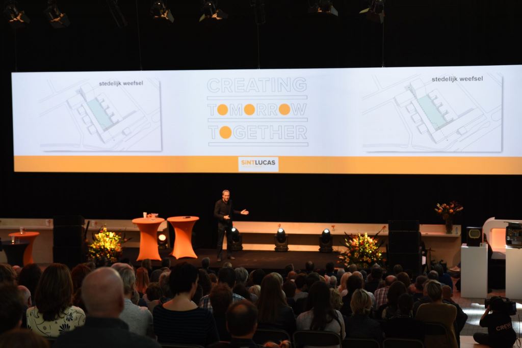 De creative community van SintLucas bestaat uit Sinten, ambassadeurs van de school. Medewerkers zijn het, studenten en leerlingen worden het na hun opleiding. En op de vraag of de minister zich voortaan ook Sint mag noemen, riep een volle zaal: “Ja!”