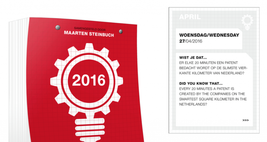Regio Eindhoven was onlangs nog de Slimste Regio van de Wereld. Maar wat maakt deze regio nou daadwerkelijk zo slim? De Slimme Scheurkalender 2016 gaat het vertellen: met elke dag een slim weetje over wetenschap, technologie en innovatie. Hoogleraar Maarten Steinbuch verzamelde ruim driehonderd opmerkelijke weetjes zodat je je iedere dag weer kunt verbazen.