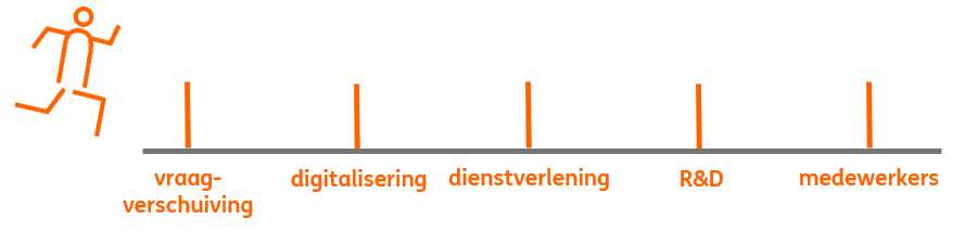 De vraag in de sector zal op basis van mondiale ontwikkelingen verschuiven naar markten als agri & food, medische technologie en semicon. Daarin heeft Nederland een sterke positie, concludeert ING. “Vooral de machinebouw kan daarvan verder profiteren.” Risico’s zijn er ook op dit punt: “Een deel van de sector, vooral toeleveranciers, zal in omzet geraakt worden door de energietransitie. Met name toeleveranciers aan de olieindustrie en automotive industrie (brandstofmotoren en gerelateerde onderdelen) zullen hun bakens deels moeten verzetten.”