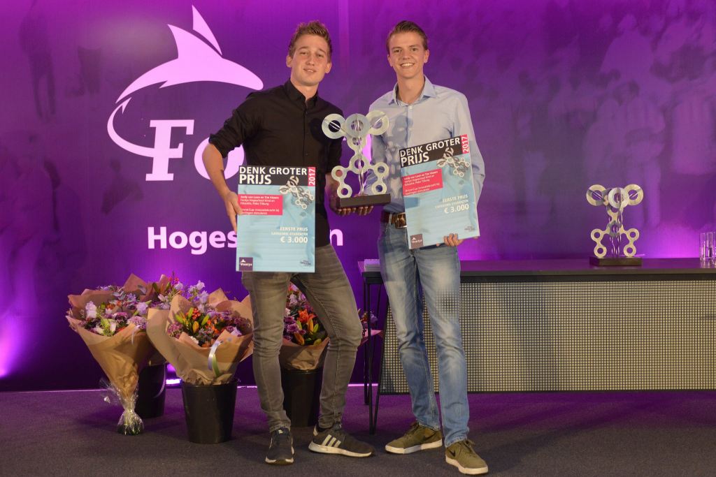 De gelukkige winnaars onder de studenten waren Jordy van Loon en Tim Vissers. Zij overtuigden de jury met hun project Drone-Cup: Innovatiekracht bij leerlingen stimuleren.