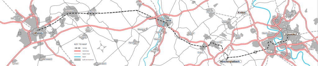 De lobby voor deze belangrijke treinverbinding loopt al jaren, maar deze week gaan de burgemeesters van Düsseldorf, Mönchen Gladbach, Venlo en Eindhoven er wat meer vaart achter zetten. Woensdag lichten ze hun plannen nader toe, in het stadhuis van Düsseldorf.