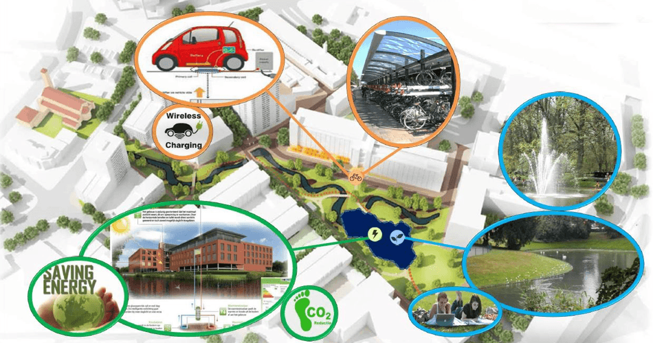 “De beschikbare ruimte is schaars en de ontwikkeling van het gebied is nog maar net begonnen. Er staan ouderwetse laadpalen en de trottoirs staan nu al vol met fietsen. Daar wordt niemand blij van. Er komt, in hetzelfde ruimtebeslag, een verdubbeling van het aantal fietsparkeerplekken. Veilig en gemakkelijk uit te breiden. Bestaande laadpalen verdwijnen en er komen ‘inductie’ laadparkeerplaatsen voor elektrische (deel)auto’s. Tevens kan er een App ontwikkeld worden in het Living Lab, die samenwerkt met een chip in je (deel)fiets.