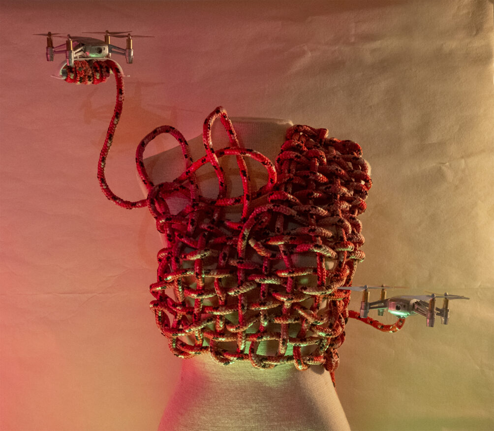 Harper introduceert drones in het textielproductieproces. De drones kunnen geprogrammeerd worden zodat ze op een manier vliegen waardoor structuren in textiel ontstaan. De drones kunnen op talloze manieren worden geprogrammeerd waardoor verschillende patronen kunnen worden geweven.
