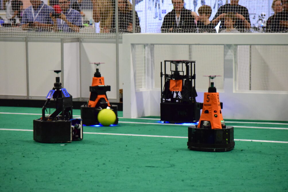 Hoe gaan robots de wereld veranderen? Een veelgestelde en nog onbeantwoorde vraag. We hebben immers geen glazen bol. Wat we wel weten is dat digitalisering en automatisering de wereld de afgelopen decennia enorm hebben veranderd. Op de Technische Universiteit Eindhoven (TU/e) wordt onderzoek gedaan naar de mogelijkheden van slimme machines in de industrie en het dagelijks leven. Wetenschappers duiken in de technologie en studententeams gaan aan de slag met concrete oplossingen voor maatschappelijke problemen. In deze reeks lees je over de nieuwste robots, hun achtergrond en hun toekomstbeeld. Vandaag de negende aflevering: voetbalrobots.