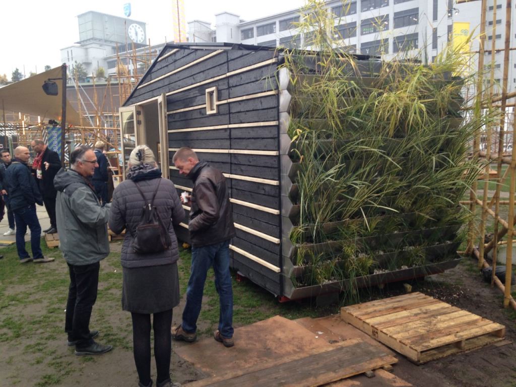 Tijdens DDW staat het Tiny Tim House opgebouwd op Strijp-S. Het huisje is compleet zelfvoorzienend. Bewoners gooien eenmalig 2000 liter drinkwater in een bak en een filtersysteem van planten, grind en bacteriën doet de rest. “Het water wordt vanaf dan constant aangevuld door regenwater, afvallig douchewater én de urine van de bewoner.”