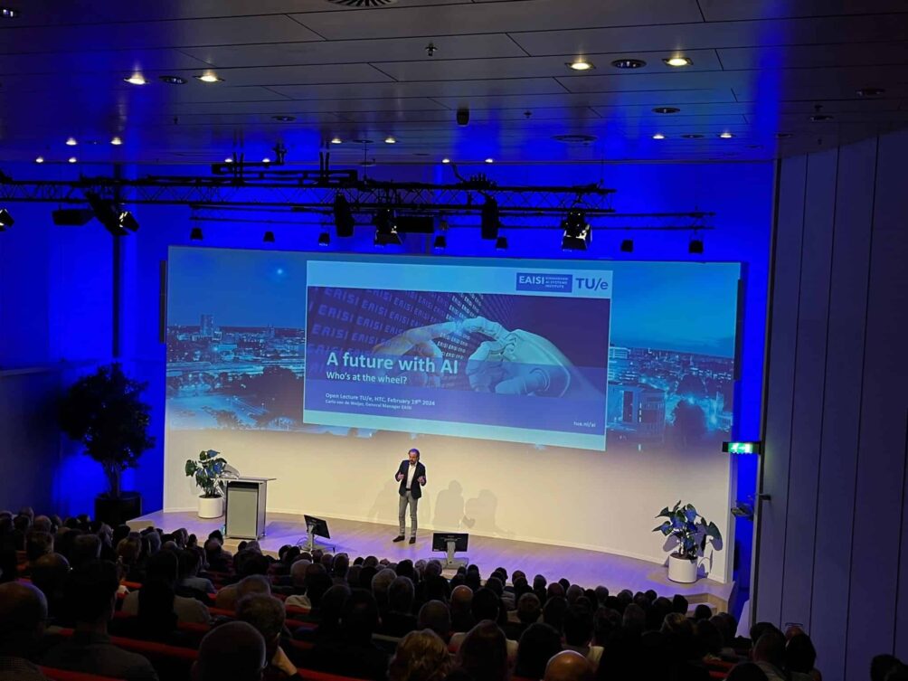 Droom of nachtmerrie, utopie of dystopie? Tijd voor wat realisme over kunstmatige intelligentie (AI). In een wereld die snel verandert door de komst AI bood Carlo van de Weijer, leider van het Eindhoven Artificial Intelligence Systems Institute (EAISI), een verhelderende verkenning van de toekomst van AI en onze rol daarin. In een lezing voor een overvolle zaal met TU Eindhoven alumni en professionals uit de industrie op de High Tech Campus Eindhoven, dook Van de Weijer in de essentie van AI, de exponentiële groei en de potentiële maatschappelijke impact.